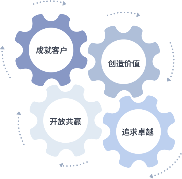 成就客户是一切决策的出发点,创造价值是衡量所有工作的标准,追求卓越是拉斯维加斯官网网站做事做人的态度,开放共赢是拉斯维加斯官网网站的格局也是最终的结果。价值观的齿轮环环相扣,推动着组织里的每个人不断向前。